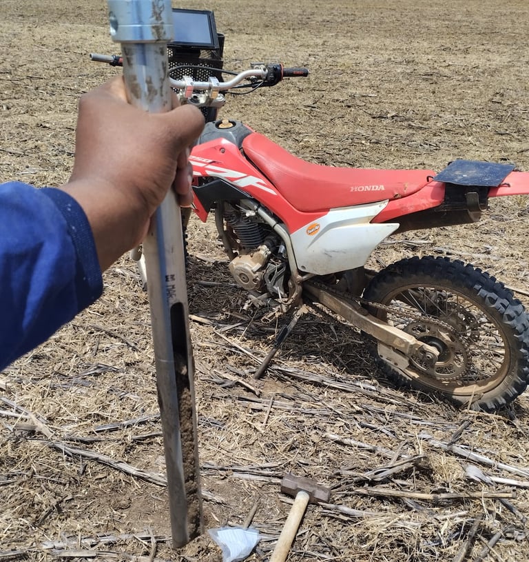 Coleta georreferenciada para análises detalhadas do solo.